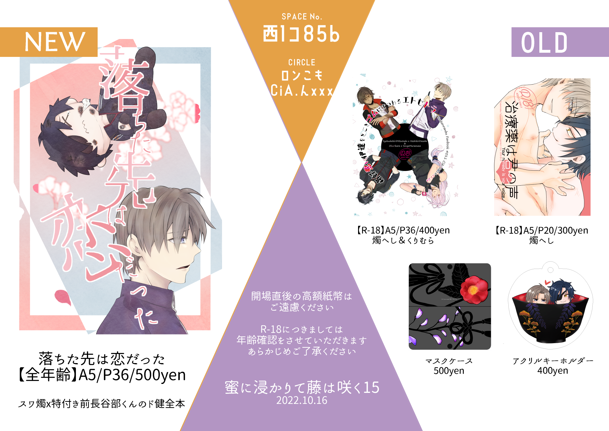 スペース:西1コ85b サークル名:ロンこもCiA.んxxx CP:燭へし
